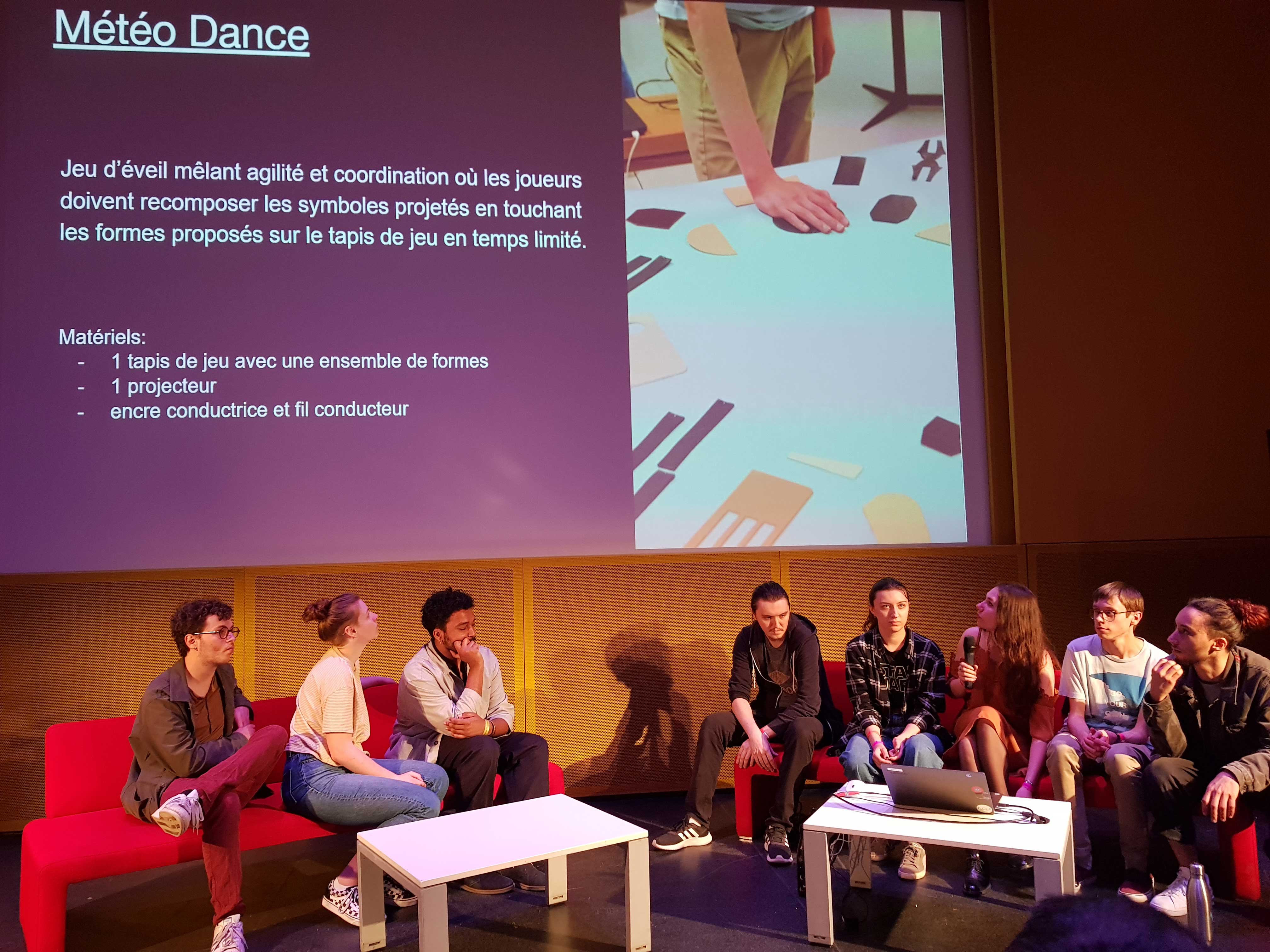 Météo dance est un jeu collaboratif réalisé pendant une gamejam nommé «This is not a video game» à la Gaité Lyrique. Le but est de faire le plus de points en un temps imparti. Les joueurs doivent appuyer sur les formes qui sont affichés par le projecteur et dont la difficulté croit en fonction des combinaisons réussies. Le jeu est composé d’un tapis tactile fait à partir des chutes de cuir et d’un écran projeté pour voir les formes à assembler. Le jeu a été réalisé avec Thomas, Ophélie, Aurélien et Younes.