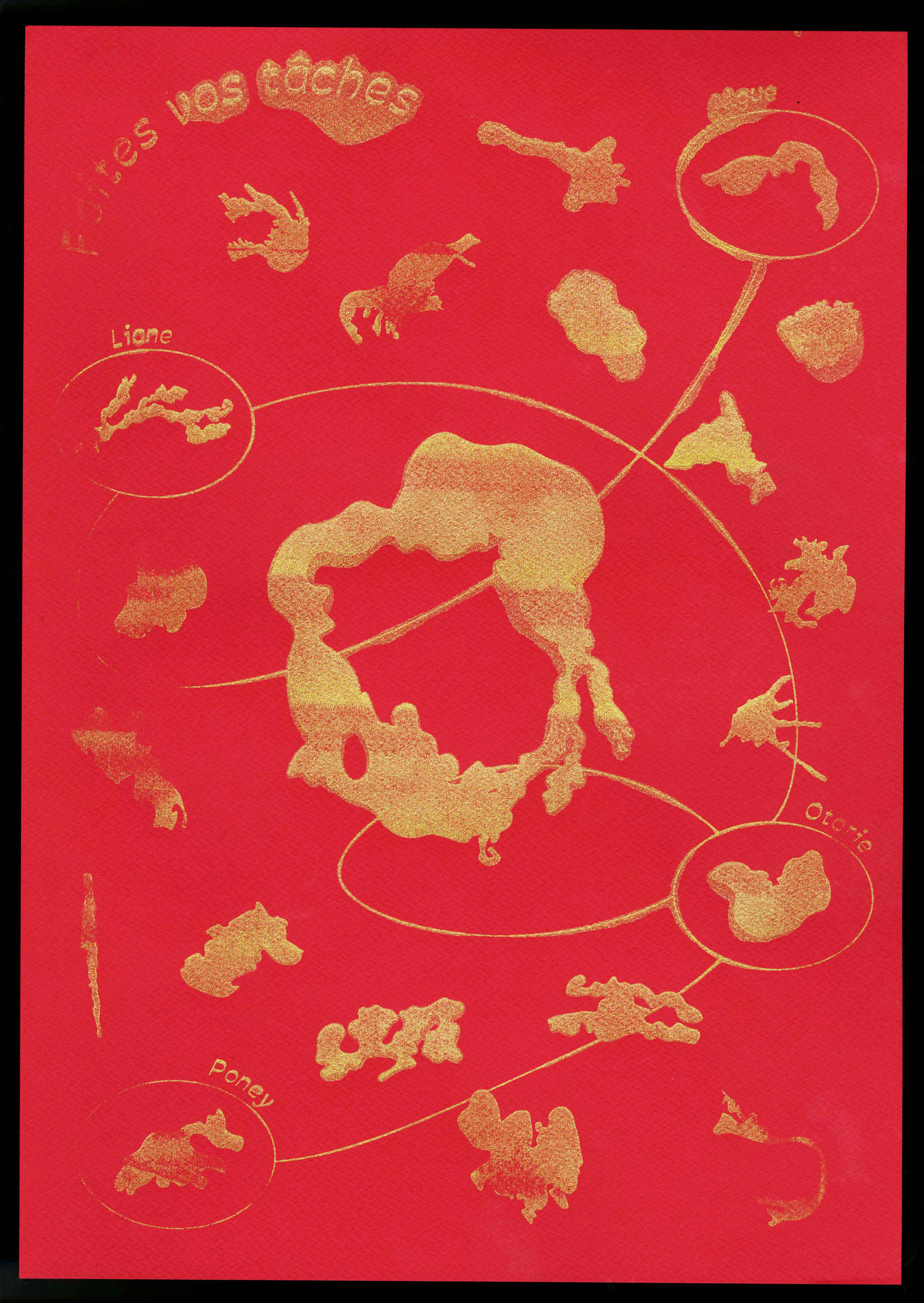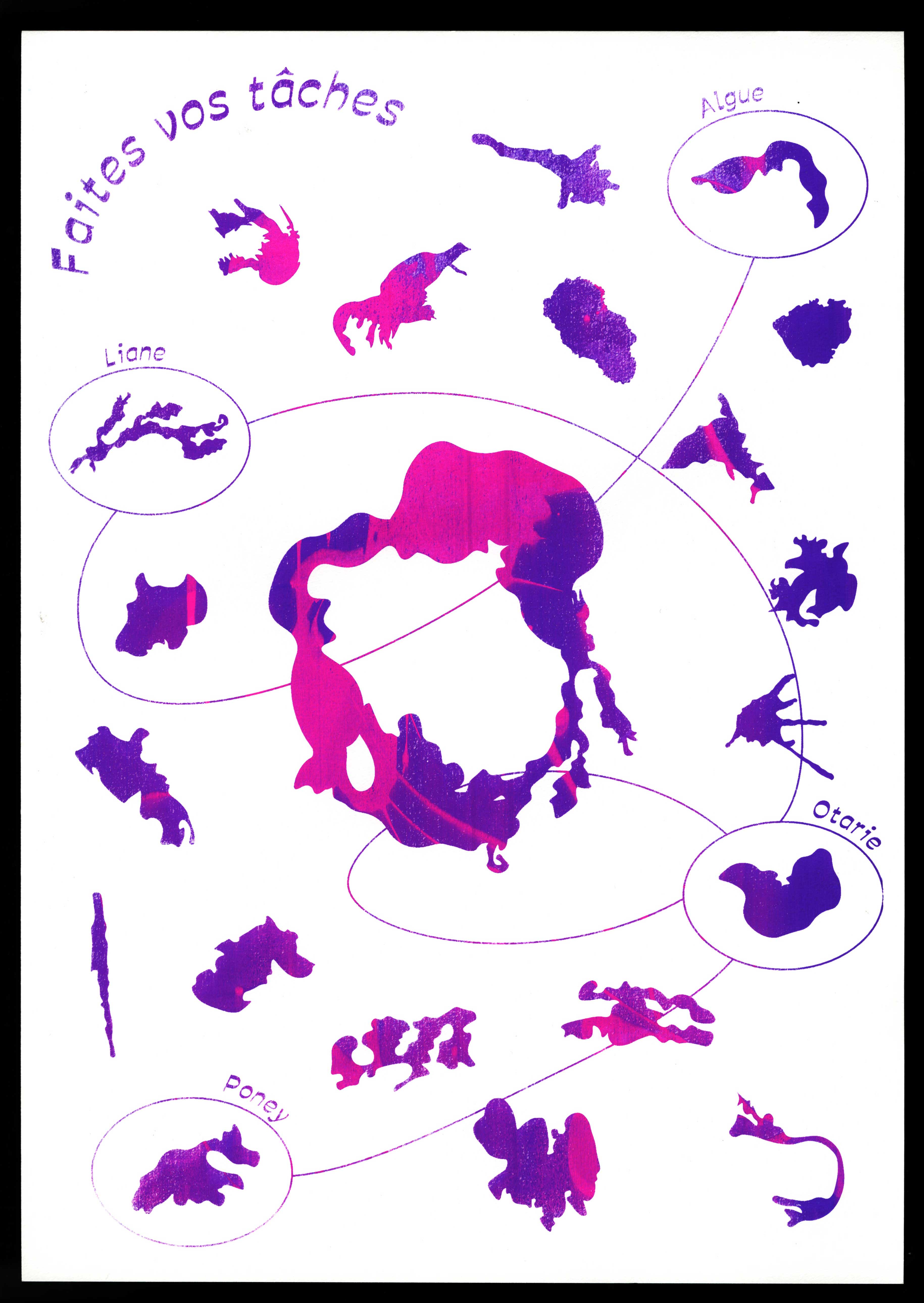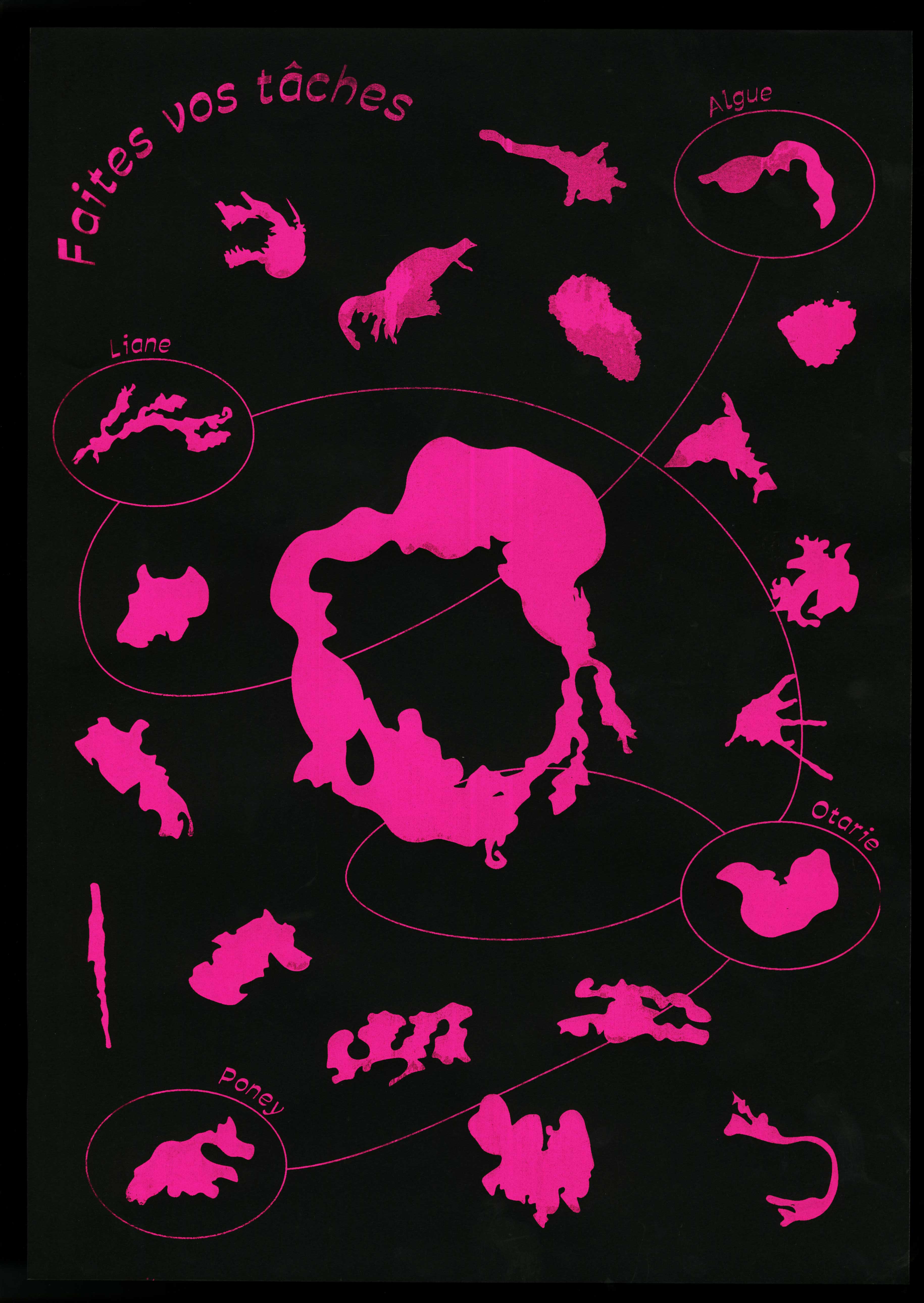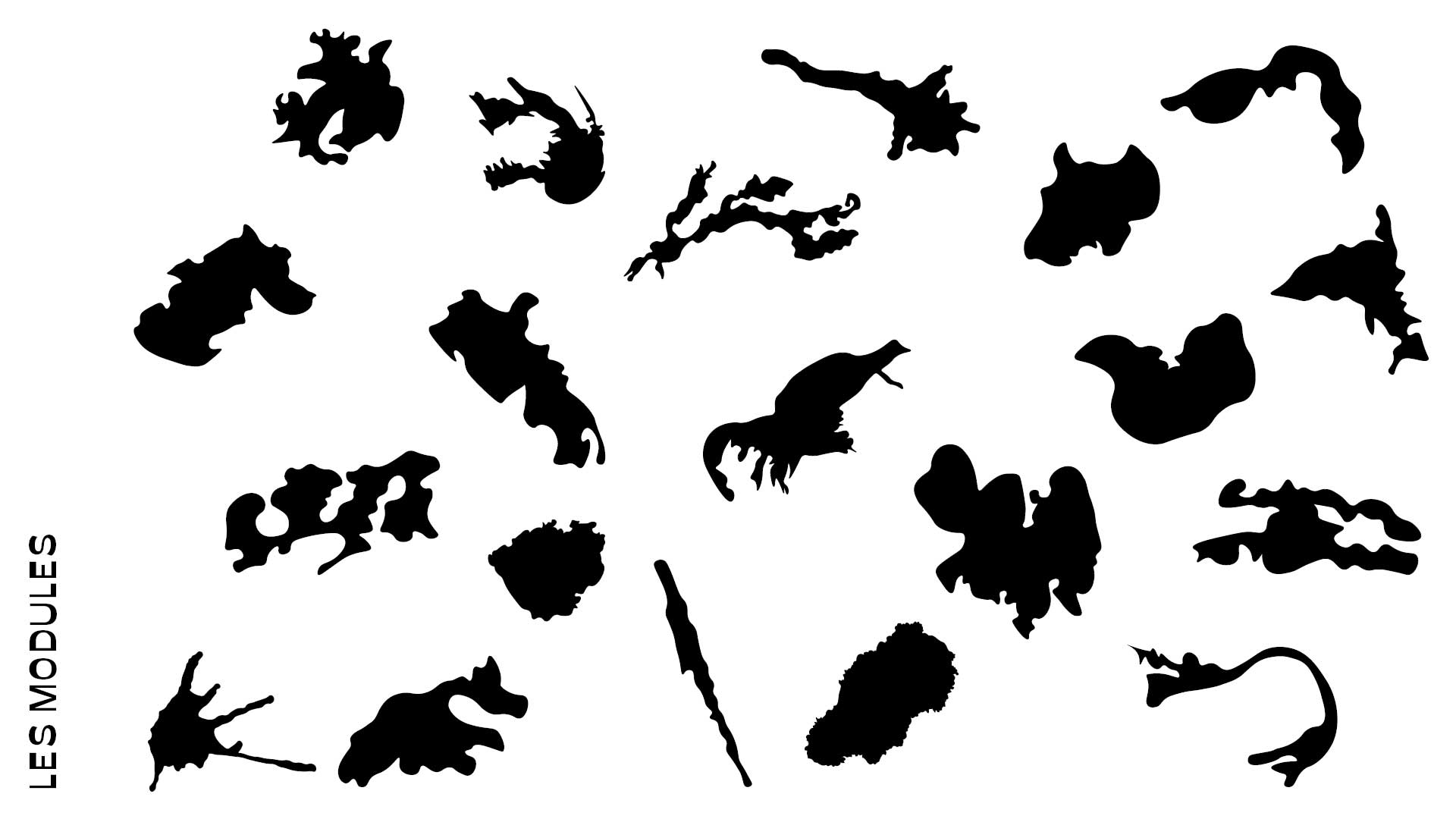 Les tâches sont toujours liées à des erreurs, des moments d’inattention, elles sont vues comme négatives. Ce normographe a pour but de mettre en valeur l’erreur comme un élément graphique. Il est constitué de collecte de tâches dans différentes productions que j’ai pu menées. Chaque module est combinable pour créer sa propre typographie. Utilisable pour des affiches, des éditions mais aussi pour créer des dingbats.