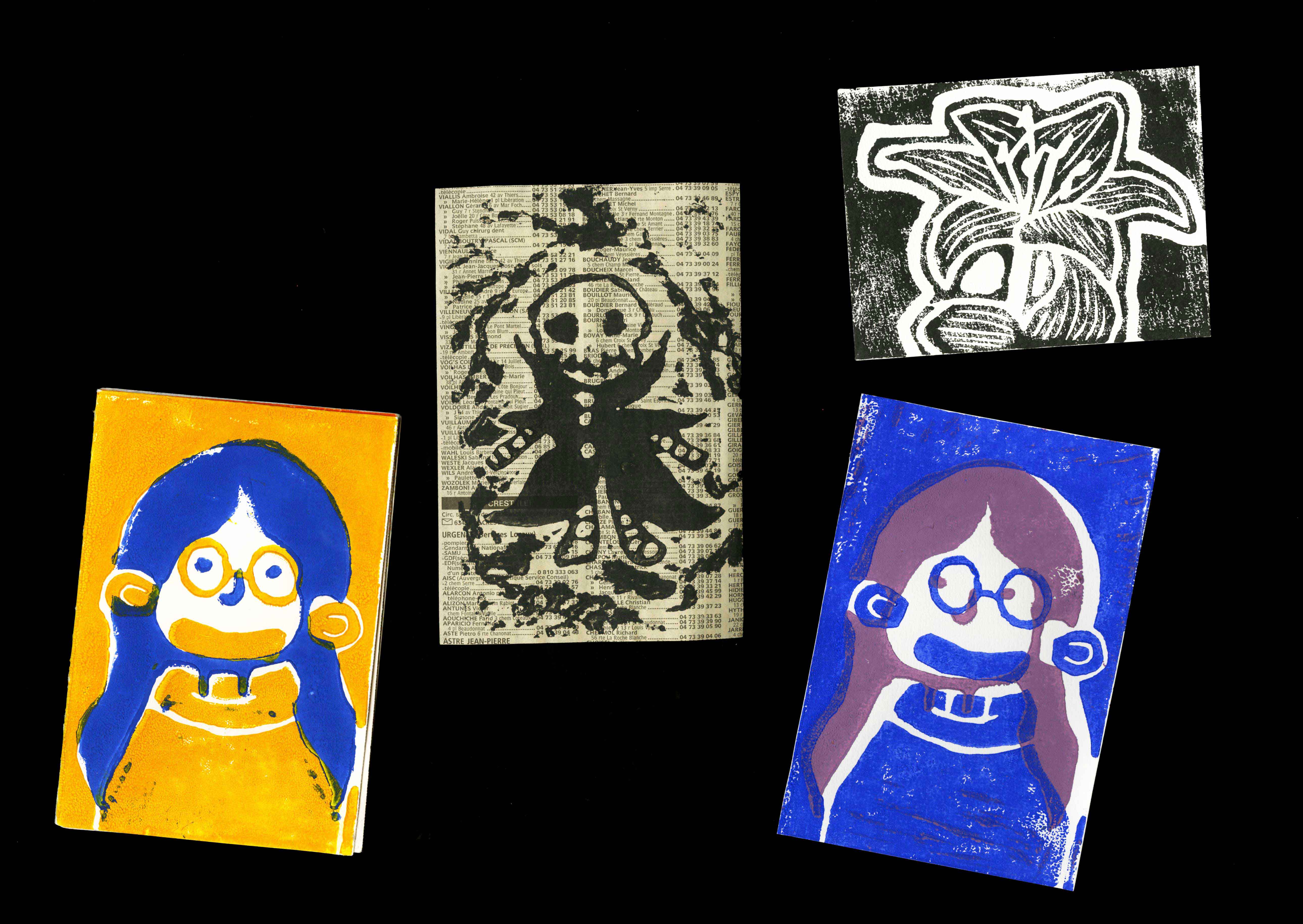 Différentes expérimentations de techniques d’impressions (gravure, sérigraphie, risographie). Découverte de la gravure en 2019 qui a été le premier point pour mon attrait et ma curiosité des techniques artisanales d’impression.