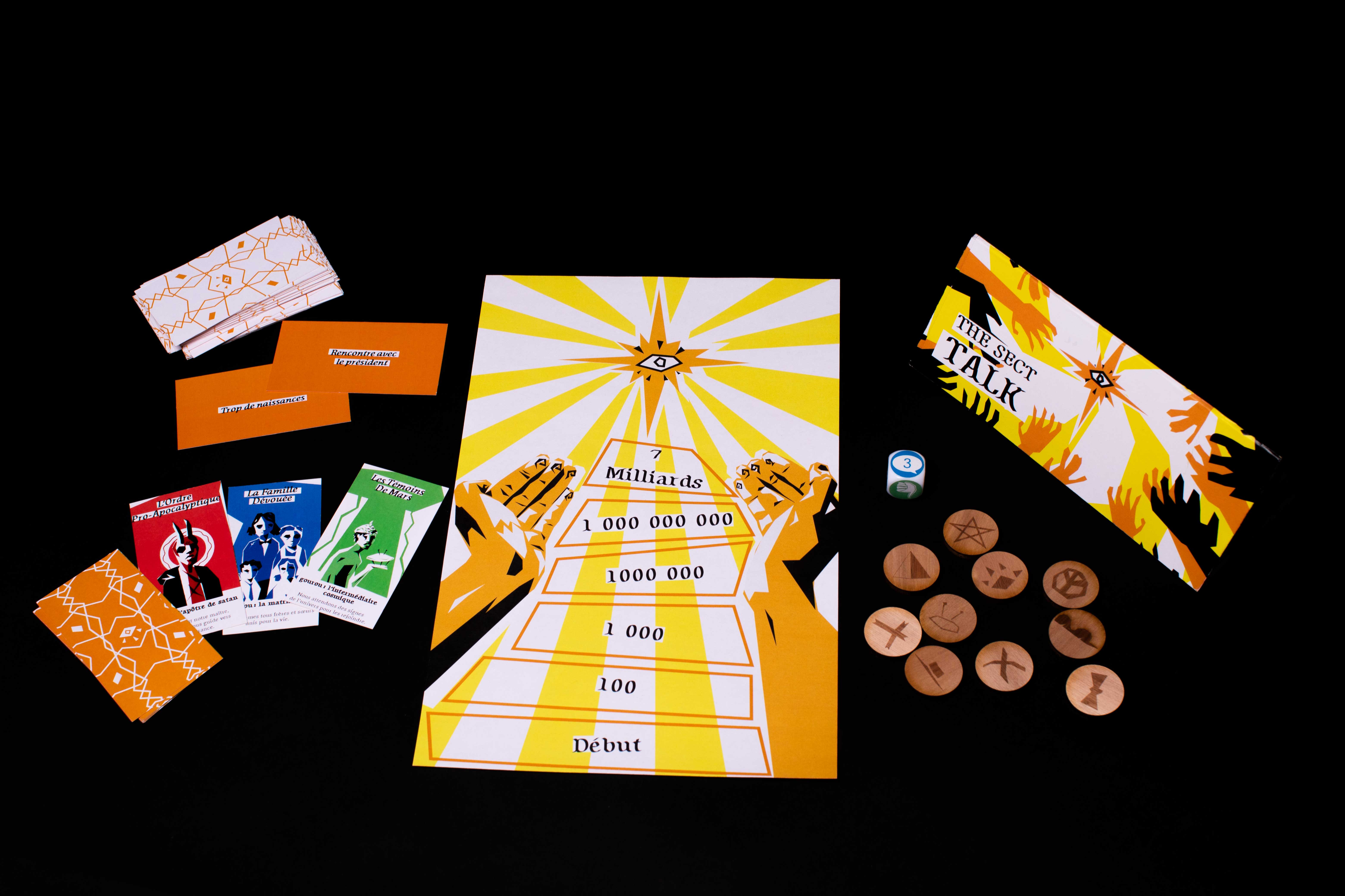 The sect talk est un jeu de société autour du thème des sectes réalisé lors d’un workshop avec la game designeuse Tatiana Vilela Dos Santos. Les joueurs jouent le gourou d’une secte qui doit convaincre les autres sectes de comment il a géré un évènement pour monter les paliers. Le jeu se termine quand une des sectes a atteint le dernier palier du plateau. Le projet a été réalisé avec Marion Vilette, Aurélien Maufroid, Mélany Charlec, Emelyne Phung, Oscar Descalzi et Elijah Tema.